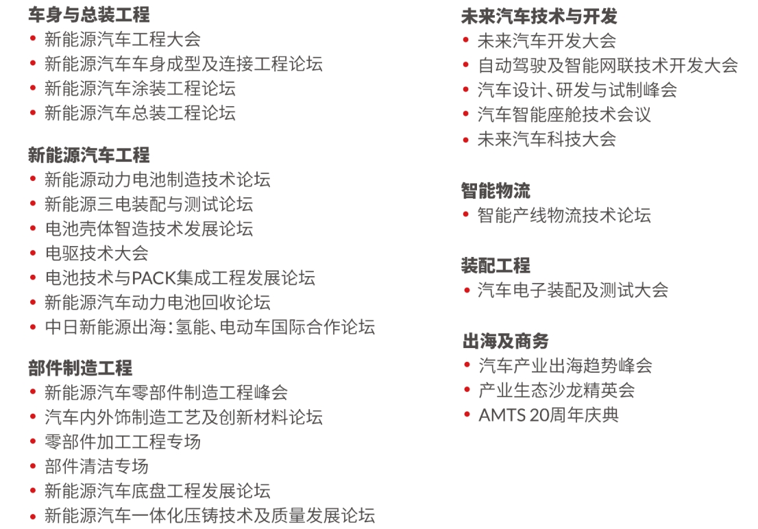 展会期间还将举办丰富多彩的同期活动,包括同期论坛、CEO访谈、新品发布、展商活动、商务晚宴等,40+技术论坛、600+演讲嘉宾以及6000+位听众,旨在汇聚全球汽车工程领域专家学者,搭建一个一站式商务交流平台。会议将精准聚焦车身与总装工程、新能源汽车工程、部件制造工程、未来汽车技术与开发、智能物流等前沿主题,力求完整覆盖汽车技术研发与工程制造上下游产业链。